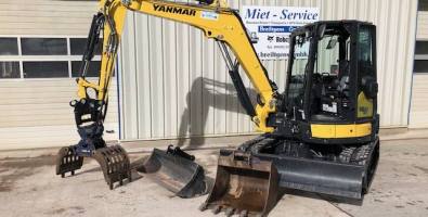 Der richtige Bagger für enge Baustellen/Gärten sowie in Gebäuden. Kontergewicht und Motorhaube sind so konstruiert, dass das Heck beim Drehen der Maschine nur minimal über die Ketten hinaus ragt. Bequemes wechseln von Löffeln/Anbaugeräten per Knopfdruck aus der Kabine. Der Powertilt ermöglicht sämtliche Anbaugeräte bis zu 90° Schwenkwinkel beidseitig (180°) zu bewegen.