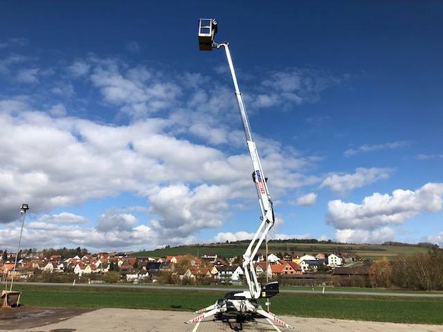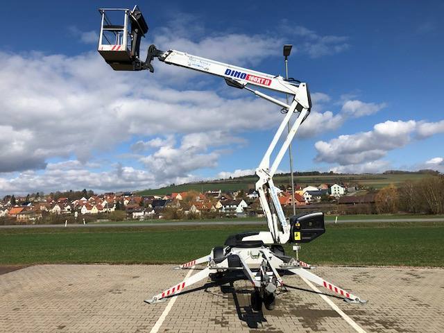 Anhängerarbeitsbühne Dino XT160 mit einem Gewicht von 1950 Kg und einer Korblast von 215 Kg im gesamten Wirkungsbereich!